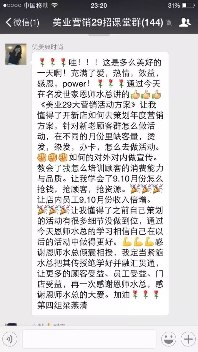 还有很多很多总裁的心得分享,这里就放这么多,看着总裁们能把课程的精髓和理念带回家,让美业更好更壮大。