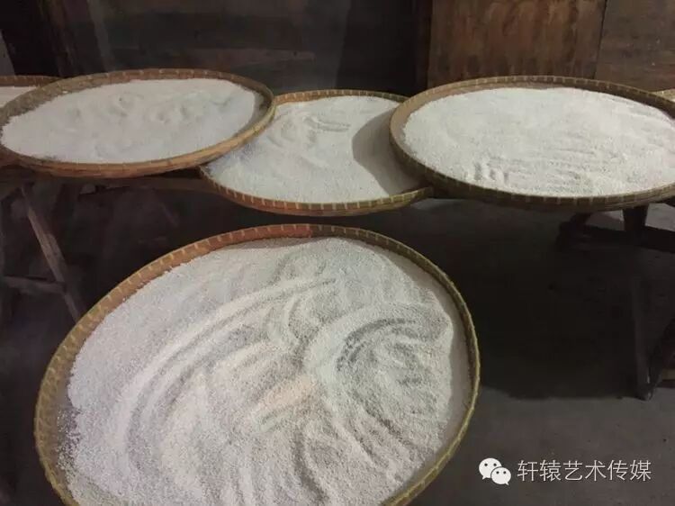 将晒干后的米,加工成粉,若在古时候,那是非常耗时耗力的活。经过长达七天浸泡的糯米磨出的粉与其他粉的手感都有区别;现在超市里卖的大多是直接用糯米磨的粉,口感与传统方法浸泡的粉有着天壤之别。缺少那种入口即化的细腻,沁入肠胃的味香。