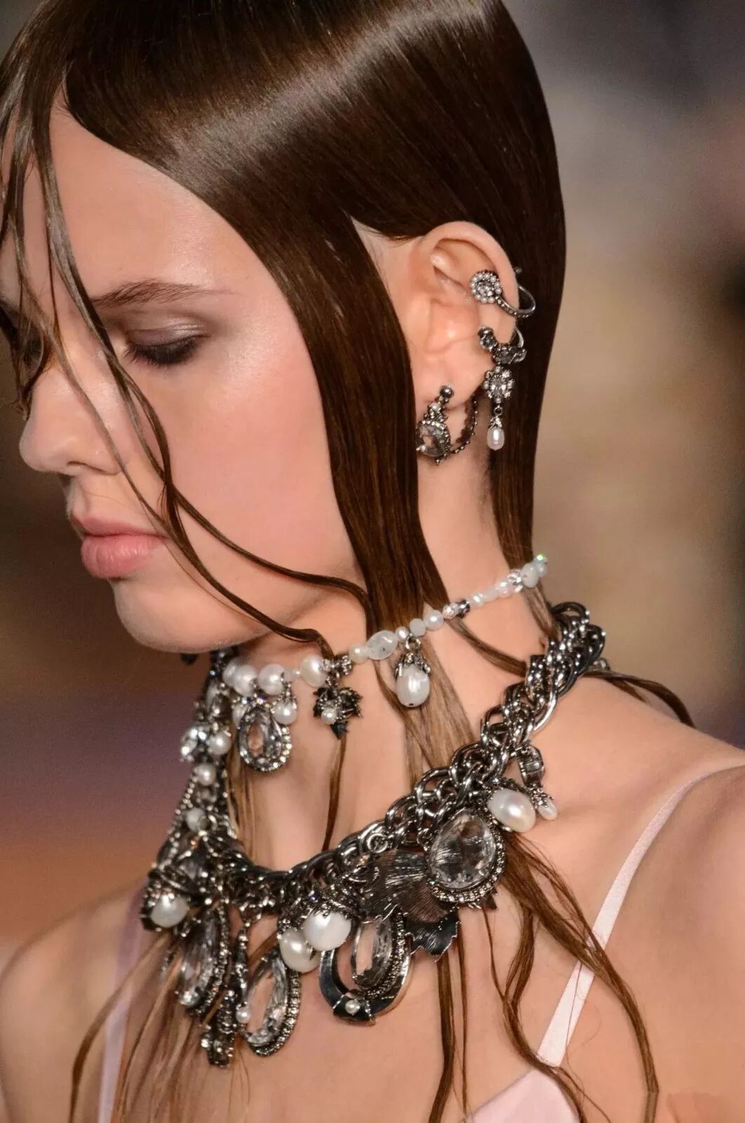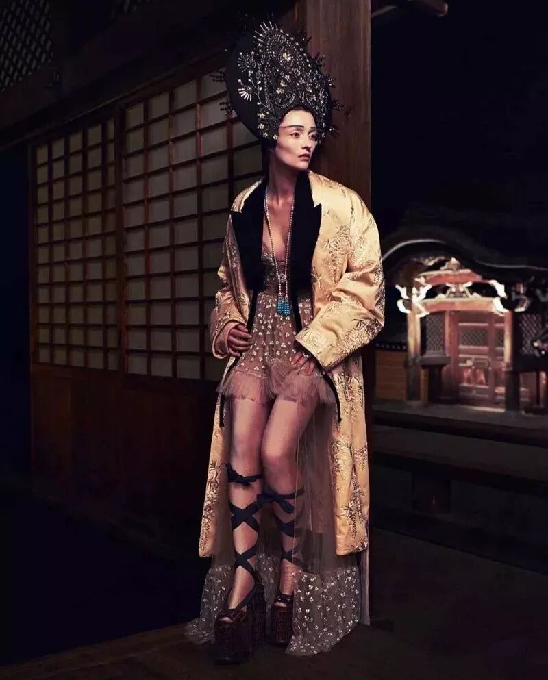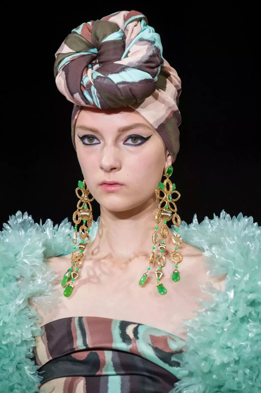 繁杂系列影响杂志造型。包罗万象的配饰流露出考究之感,跨文化服装尽显俏皮。宝石搭扣彰显皇家复古格调,多种装饰细节与面料拼接彰显现代极繁风格。