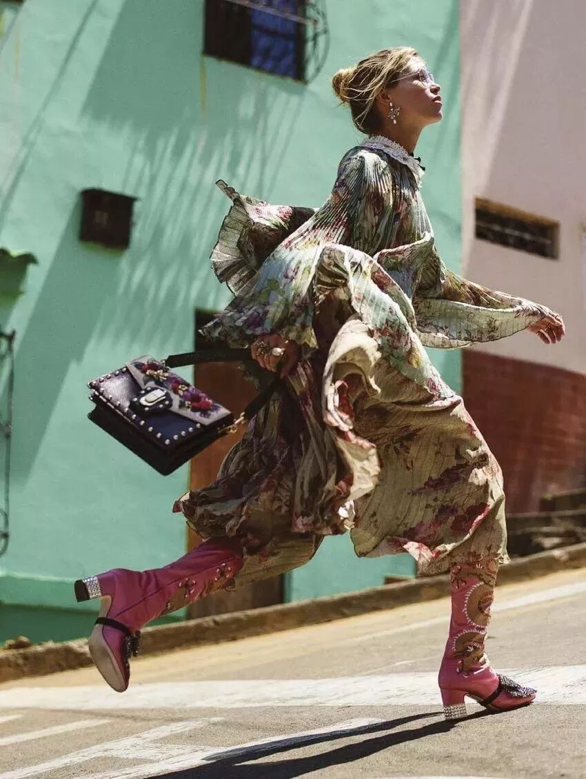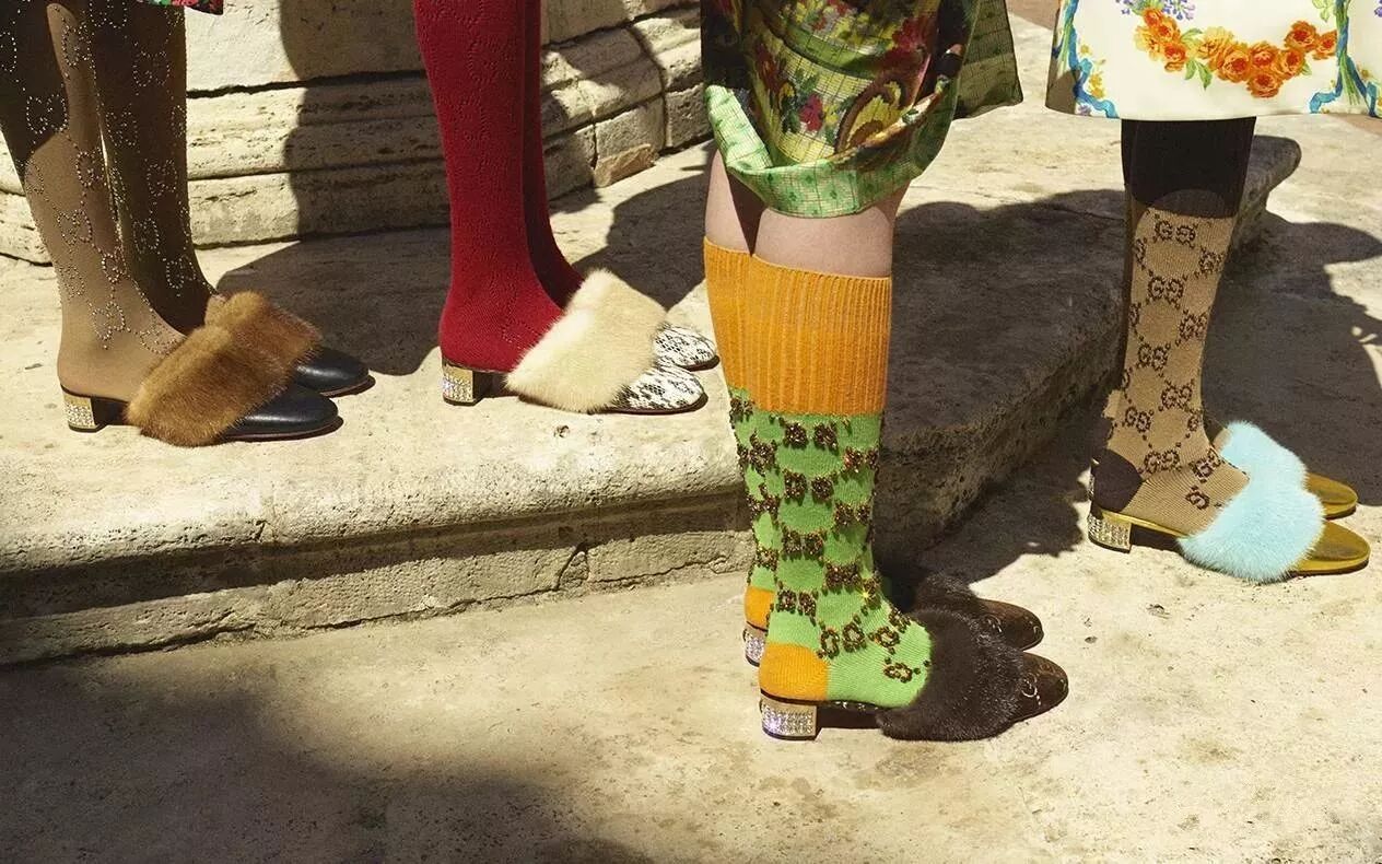 GUCCI这次的18早秋系列画报依旧是一股GUCCI味,松垮的长靴、登山鞋元素的短靴,而长靴的筒面在这一两年越来越趋向于松垮了,GUCCI的这款长靴的筒面打造出了裤子的视觉效果,让人不禁想到果然是GUCCI,够奇葩!