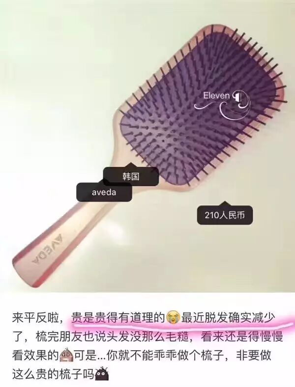 ,我感觉大s总是被人消费,虽然她推荐的东西好多并不怎样,但是这款梳子真心不错难怪有顾客和我说,前两年它在香港总是卖断货,而港代通常都是220多起。韩国免税店热卖的一款梳子