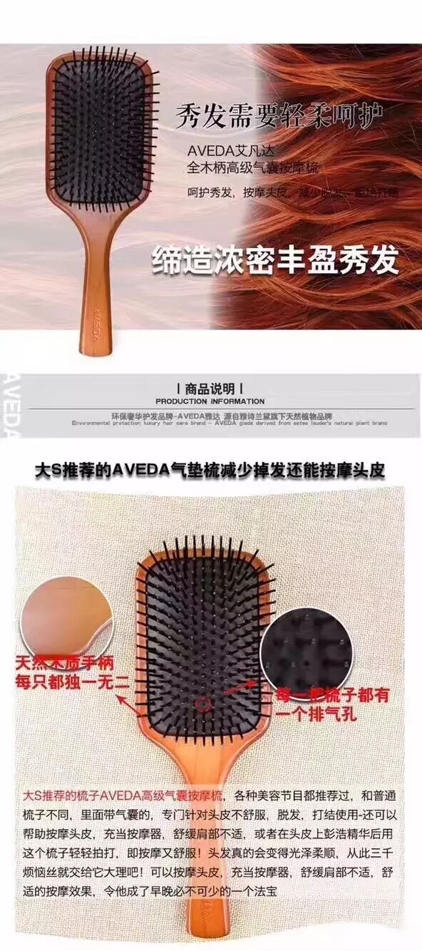 韩国贵妇级品牌!!AVEDA艾凡达全木柄高级气囊按摩梳,各种美容节目都推荐过,可以按摩头皮,充当按摩器,舒缓肩部不适Aveda高级木柄木质超宽奢华气囊气垫按摩梳