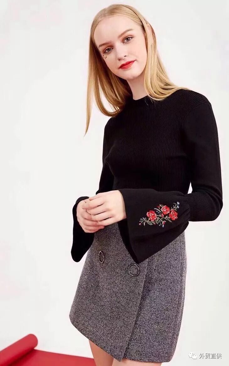 Vero Moda2017冬季新品通勤百搭款袖口大喇叭针织衫!原厂货,老渠道,买过我 家的应该都知道!大身面料采用混合羊毛棉线,主要成分:粘纤52.9% 锦纶47.1%,领口设计加 上袖口大喇叭袖,文静中又有女人味,修身版型,无论天气温暖单穿 还是天冷打底,都是百搭 款,艳丽的主角!