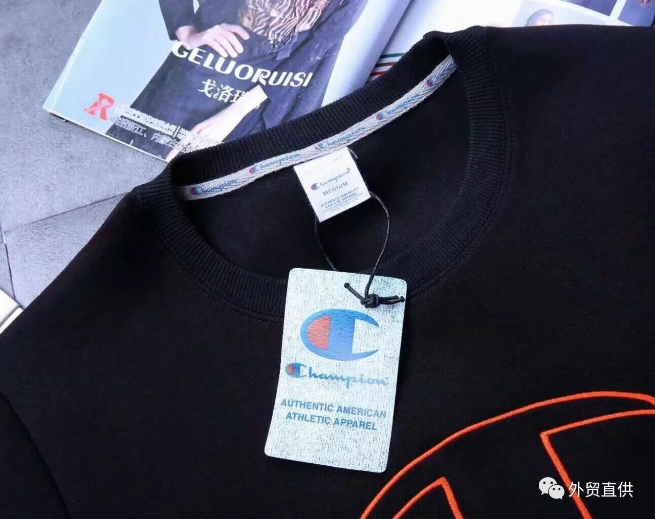久违的好货!冠军品牌文化非常的赞!冠军的理念就是:人人心中都有一个champion梦!对于冠军来说非常经典的一款,对于我们来说不得不入手的一款。男女通杀的款式!此单货全部国内代工厂订单!很难流出到市面上来!原版客供领标洗标全部被替换掉才能出来的!客供标数量都是有限的!所以原始标很难能出来!衣服全部原版的!空气棉面料 质感柔软度非常的好!上身非常舒服 刺绣全部进口机器刺绣!非常密实!胸前的刺绣还是冠军专属的一贯风格!简单潮流!冠军的衣服一直都是以宽松为主!宽松点才能穿出潮流的气息!