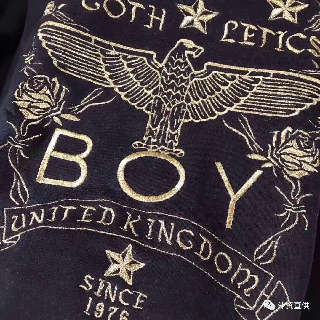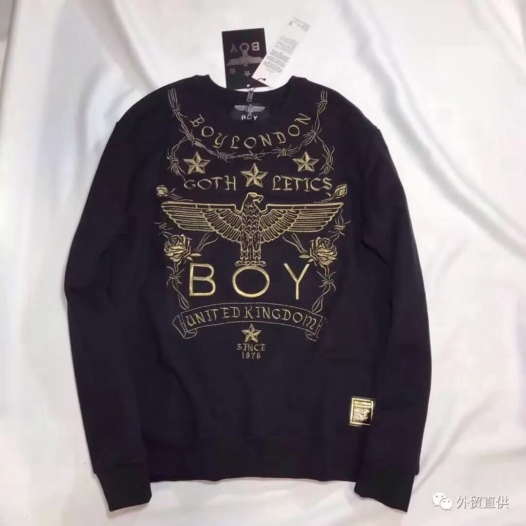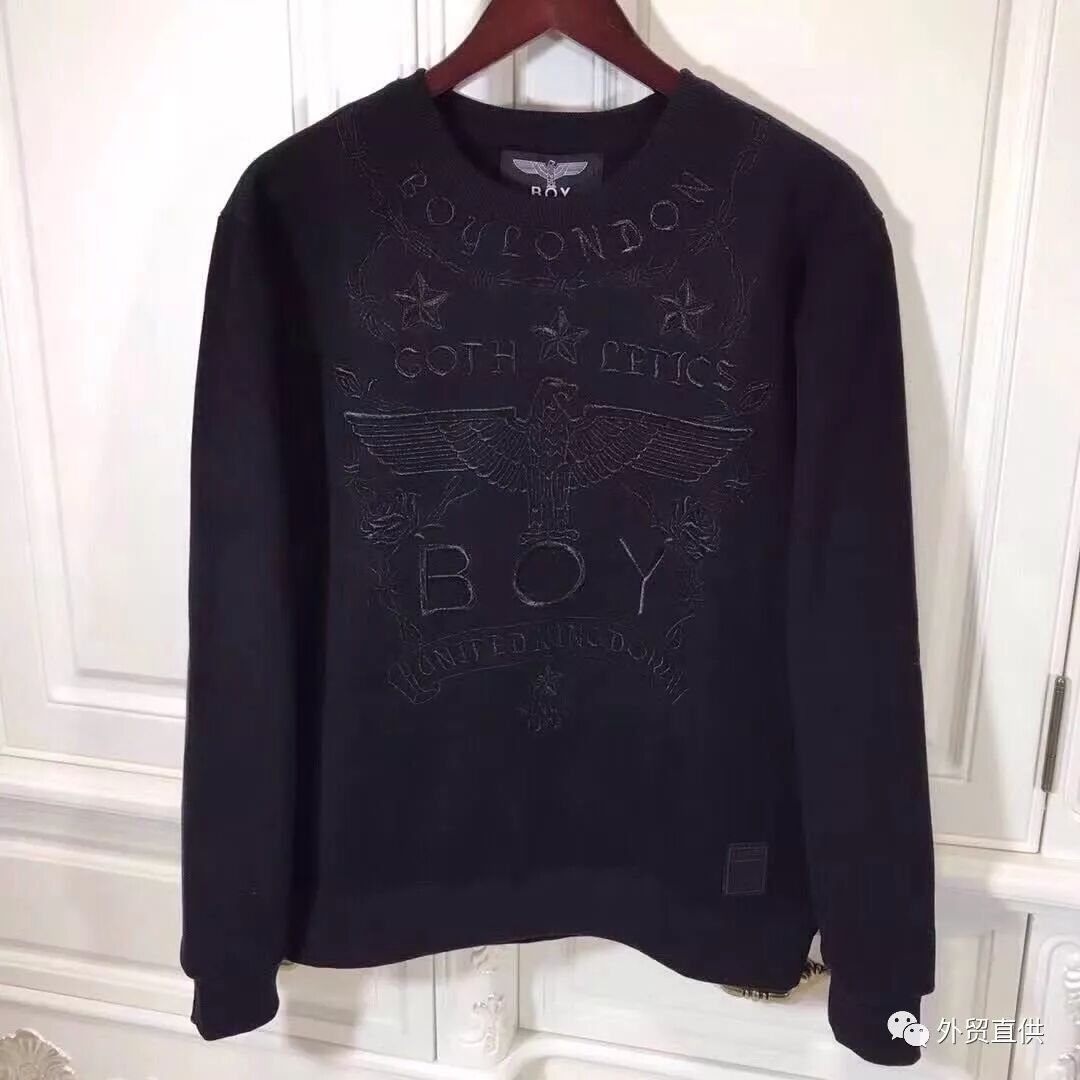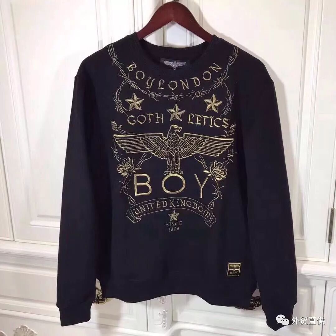 BOY17秋冬专柜最新款刺绣老鹰BOY加绒卫衣 BOY可以说是英伦街牌的鼻祖,成立之初就打上叛逆的标签,不断以一种颠覆性的理念挑战传统的服饰行业,大胆的图案、宽大的T-Shirt剪裁等等都是标志性特征。从充满青春的名字、大大的黑色背景以及“鹰”味十足的LOGO不难看出其潮流、颓废、叛逆的色彩。重工胸前刺绣,工序复杂繁琐,做工也是极其考究,走线非常精细,个性张扬的大LOGO,任你怎麼搭,外搭,内穿,潮潮的,酷酷的,简单范儿更出众!面料采用40支全棉双股加厚大毛圈高达400克重亲肤亲水 极具手感 胸前整个前片大面积刺绣 采用进口刺绣机 高密度刺绣 针数更是高达40多万针 金线进口纳米金线 一片超吸睛的BOY标志性的刺绣展翅雄鹰 虚实及结合延续了BOY一贯的传承 青春而热烈全身更是多处拼接 每处拼接都带有工艺和印花的小心机 代购同货源 可以预计此款将会满市面横行 ?️所谓各种版本层出不穷 咱们追求性价比 欢迎实物对比 上身效果 不须多说 一句话 只是在人群中多看了你一眼 就再也忘不了你容颜 哈哈 男女同款 小码女生可以轻松驾驭
