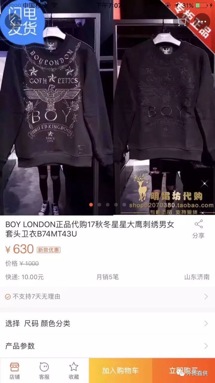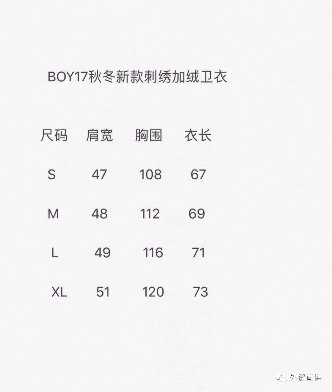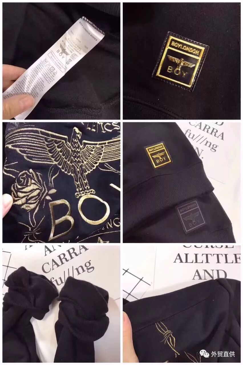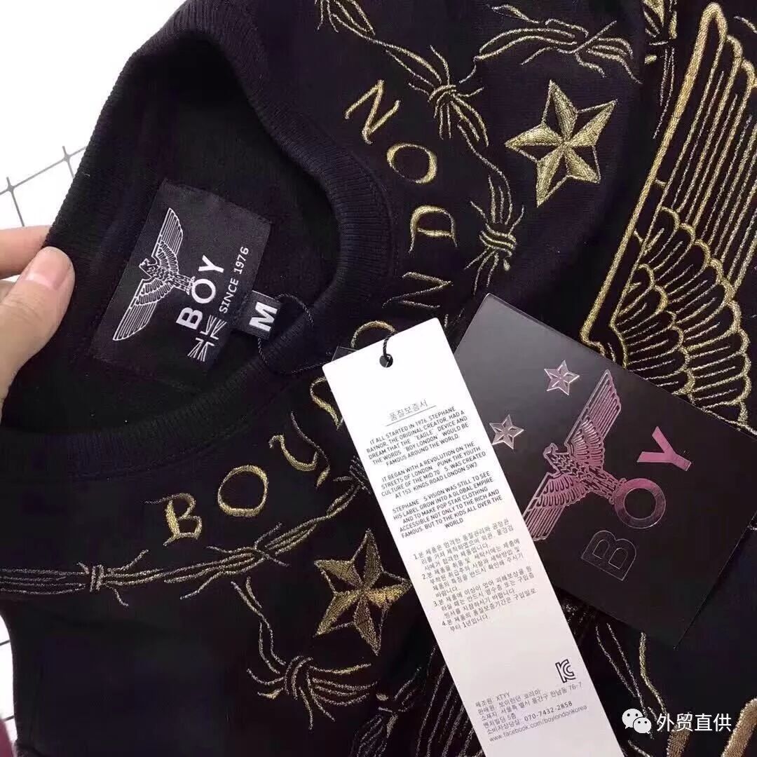 BOY17秋冬专柜最新款刺绣老鹰BOY加绒卫衣 BOY可以说是英伦街牌的鼻祖,成立之初就打上叛逆的标签,不断以一种颠覆性的理念挑战传统的服饰行业,大胆的图案、宽大的T-Shirt剪裁等等都是标志性特征。从充满青春的名字、大大的黑色背景以及“鹰”味十足的LOGO不难看出其潮流、颓废、叛逆的色彩。重工胸前刺绣,工序复杂繁琐,做工也是极其考究,走线非常精细,个性张扬的大LOGO,任你怎麼搭,外搭,内穿,潮潮的,酷酷的,简单范儿更出众!面料采用40支全棉双股加厚大毛圈高达400克重亲肤亲水 极具手感 胸前整个前片大面积刺绣 采用进口刺绣机 高密度刺绣 针数更是高达40多万针 金线进口纳米金线 一片超吸睛的BOY标志性的刺绣展翅雄鹰 虚实及结合延续了BOY一贯的传承 青春而热烈全身更是多处拼接 每处拼接都带有工艺和印花的小心机 代购同货源 可以预计此款将会满市面横行 ?️所谓各种版本层出不穷 咱们追求性价比 欢迎实物对比 上身效果 不须多说 一句话 只是在人群中多看了你一眼 就再也忘不了你容颜 哈哈 男女同款 小码女生可以轻松驾驭