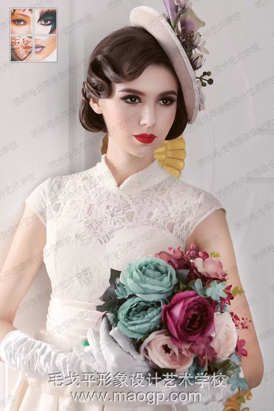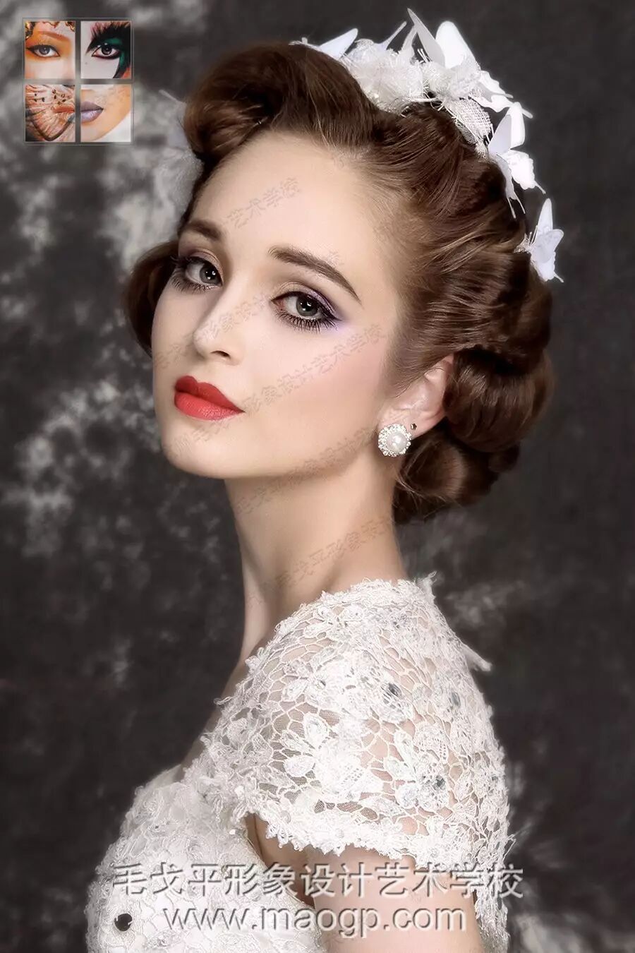 一款复古优雅的新娘发型就完成了。看似简单,要做出效果不容易的哦,喜欢的同学要勤加练习哦~~么么哒~~
