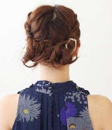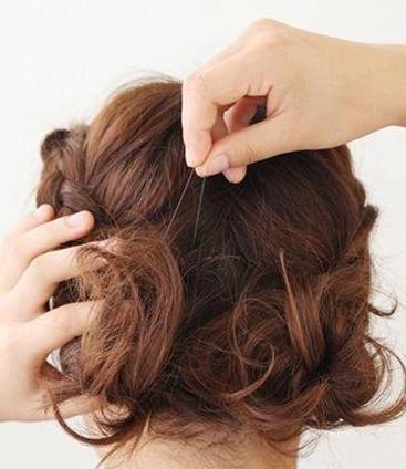 打毛的发尾扭转之后缠绕,用发夹做成小发髻。