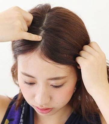 头发不是很长的女生,梳造型的时候要先给头发梳分区。