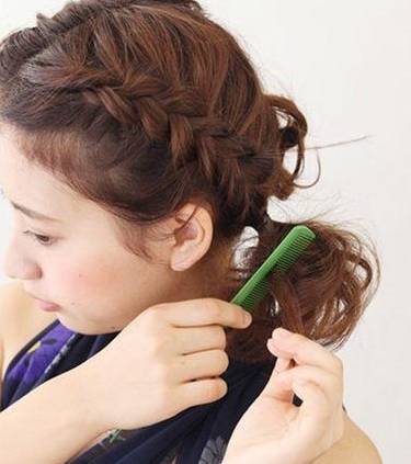 扎好的辫子发尾,要用密齿梳逆梳打毛。