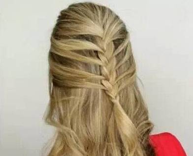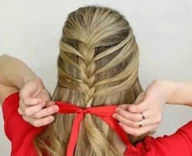 第三步:再接下来的编发中不断的加入两侧的发丝,每一次的加发不需要太多,要有优美的线条,不要编织的过紧。