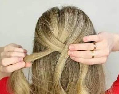 第二步:将分离出的发丝分成三股,编织一道三股麻花辫,开始的时候编发是比较难的,要注意发顶发丝的蓬松度,可以使用海绵宝宝垫高发丝。