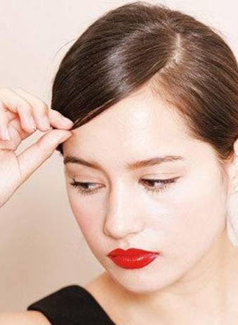 step3:用手将额前的侧分处弄出好的弧度感,以此来修饰脸型的精致感。